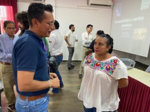 Foto: Biólogo Cristian Vargas Quino (Socio del COBIOLPROVER, AC) con la Secretaria del Medio Ambiente de Veracruz en el marco del Foro Regional ante el Cambio Climático Dialogo y Acción Región Sur celebrado en la Ciudad e Catemaco 08/10/2025